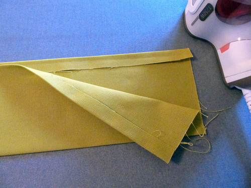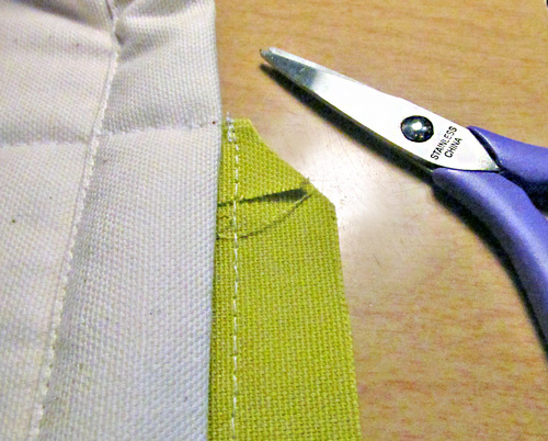 - Trim the seam allowance back to approximately ¾” and trim away the excess at the ends so they are flush with the main fabric panel.