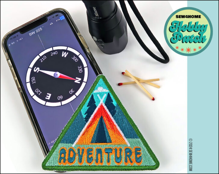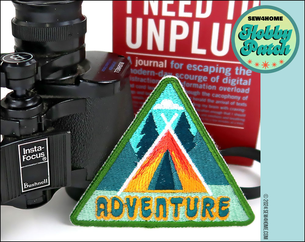 It can be stitched as a stand-alone patch as shown here or embroidered directly onto the base fabric or project of your choice. Do you have someone “outdoorsy” on your Hard-to-Buy-For list? Gift them this patch to apply to their favorite jacket, jeans or backpack. Its unique triangular shape is reminiscent of the vibrant travel stickers that used to adorn vintage steamer trunks.