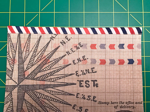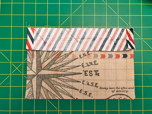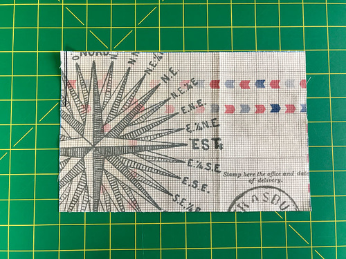 NOTE: As mentioned above, we used a full two yards to get our very specific fussy cuts; 1 yard would be sufficient to still yield some precise cutting of all the elements. - ½ yard of 44″+ wide quilting weight cotton for the top binding, pocket binding, and exterior base accent; we originally used Postal Stripes from the Correspondence collection by Tim Holtz