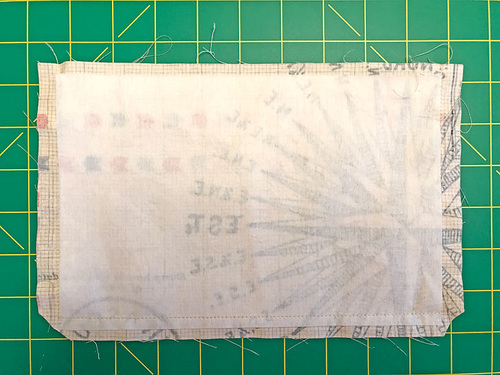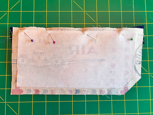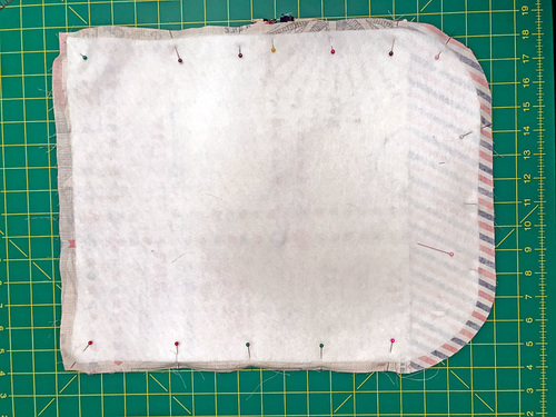 - Place the fused front and the plain lining panels right sides together. Pin along the sides and across the bottom. The top remains open and raw.
