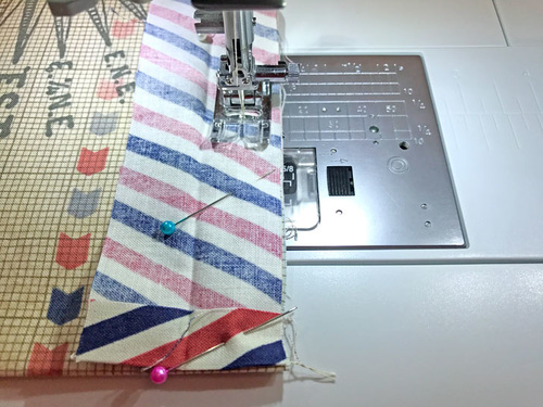 - Pin the pocket in place along both sides and across the bottom.