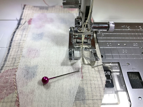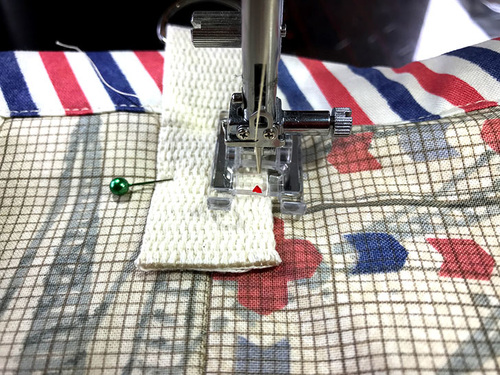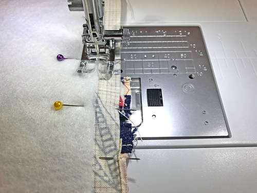 - Attach a Zipper foot. Using a ¼” seam allowance, stitch in place across the entire pocket panel.