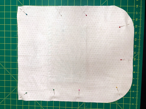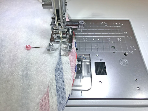 - Keep a smooth and even curve around the bottom corners. If you centered the fusible fleece as directed, you can use it as a ½” guide line, stitching right along the edge of, but not on, the fleece.