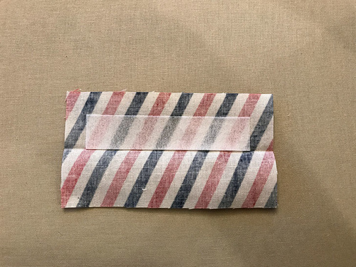 - Fold in one end and both long sides ½”. The opposite end remains open and raw.