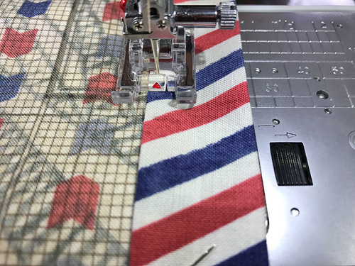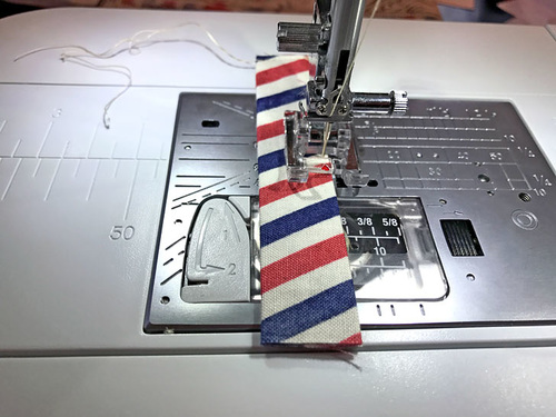 - Re-thread the machine if necessary with thread to best match the binding fabric. Lengthen the stitch.