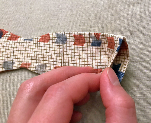 - Fold the binding down along its original crease line and pin in place.