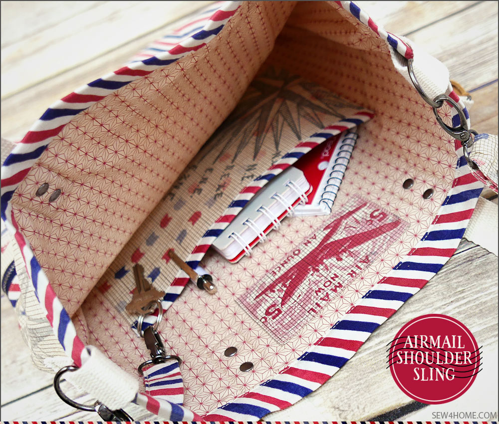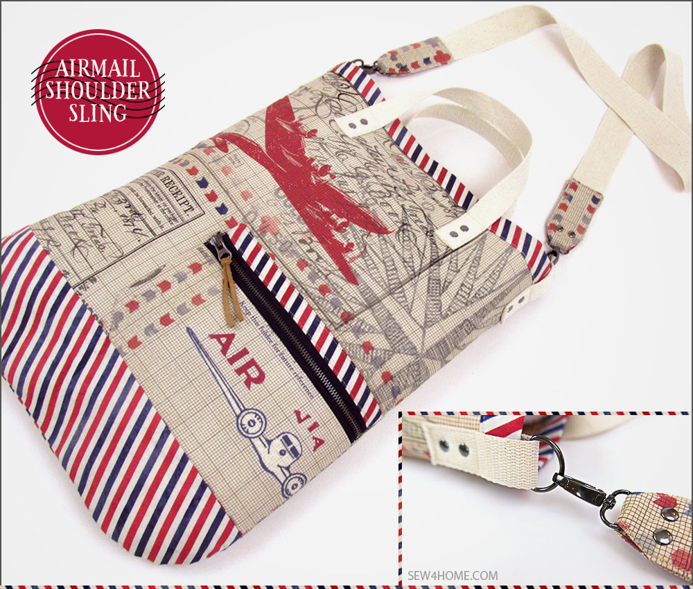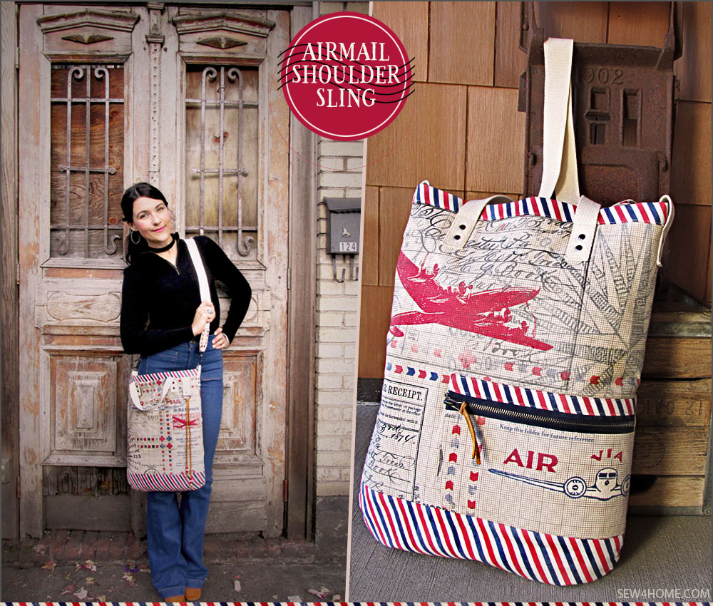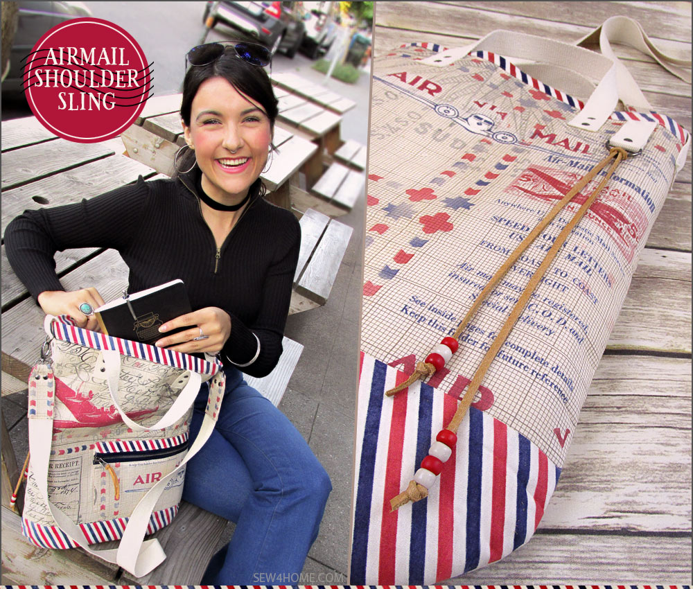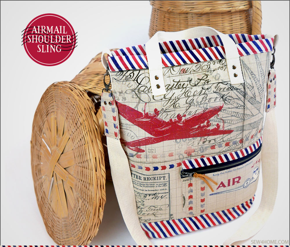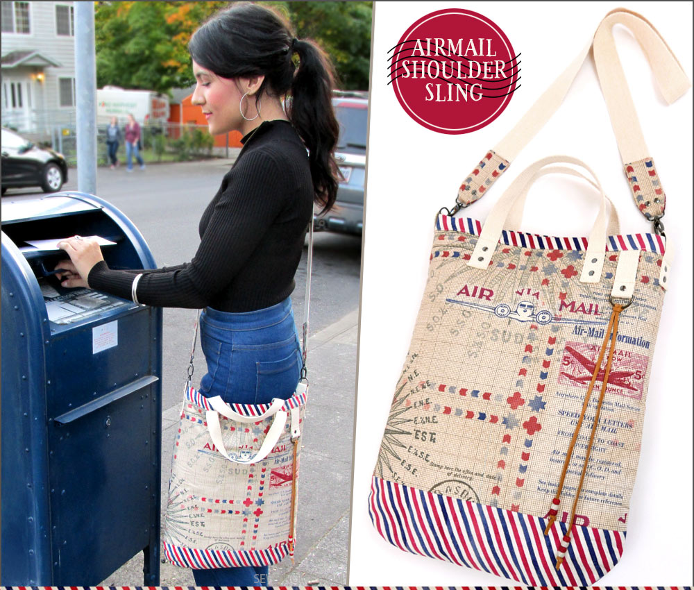 These days, we rather disparagingly call it “snail mail.” And yet, I certainly perk up when I spy a handwritten envelope amongst the pile of bills and circulars. A real letter is a real treat, and brings back lovely memories of a time when communication, although much slower, was also more anticipated and thoughtful. This nostalgia is part and parcel of our Air Mail Shoulder Sling Satchel, which was originally inspired by the vintage-rich Correspondence collection by Tim Holtz for FreeSpirit Fabrics. We created a unique shoulder satchel with the feel of a mail carrier’s bag.