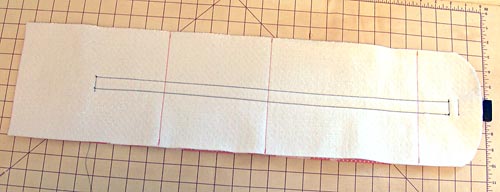 - Find the PUL body piece and layer it, wrong sides together, with the completed bag front.