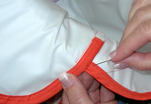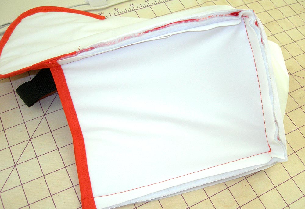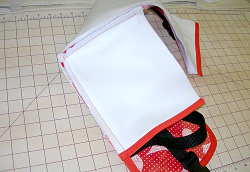- Slip stitch the flap binding (on each side) to the side binding. Just the small section, binding to binding; do not stitch into the PUL.