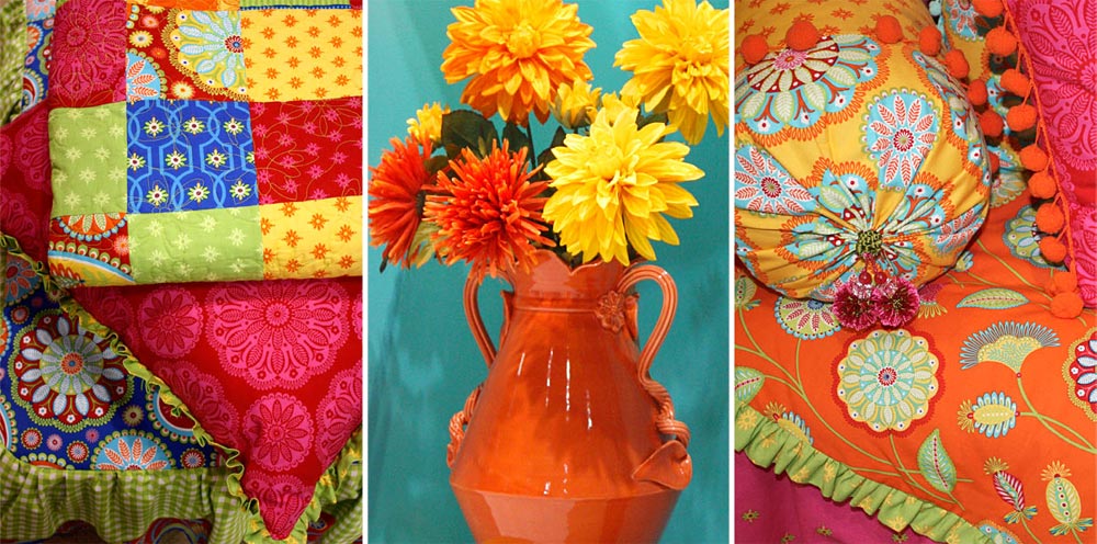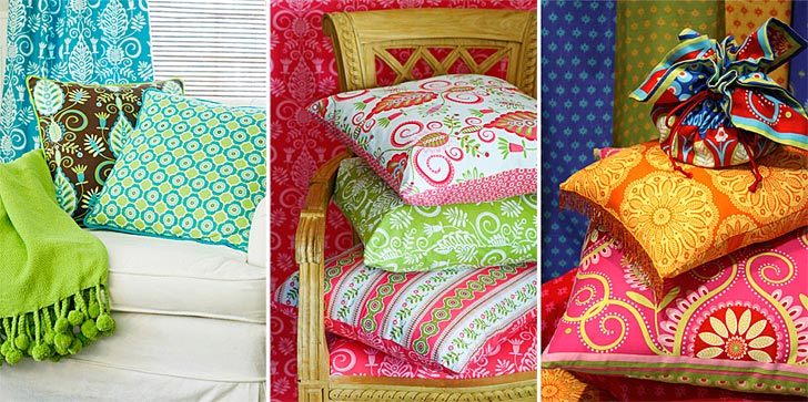 Gypsy Bandana is the third collection by Val and Anne for Michael Miller Fabrics. Their first was the bold and beautiful Whimsy. The second was Pretty Bird, from which we’ve made a number of great projects here at Sew4Home, including our Big Ruffled Pillows.
