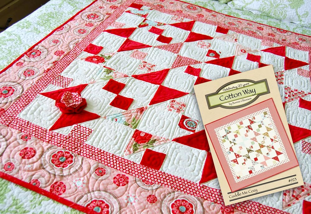 BONNIE: The inspiration comes in so many ways. As for color, a beautiful bowl in just the perfect color, a throw that has a unique shade of red, maybe even a cute pair of shoes start the creative juices flowing. As far as patterns, sometimes it’s an occasion that calls for a celebratory quilt: a new baby, graduation, wedding, 85th birthday. Sometimes it’s the new fabric line that says, “I would make a fantastic bag!” You just never know when something will click and a new pattern or fabric line gets its start.