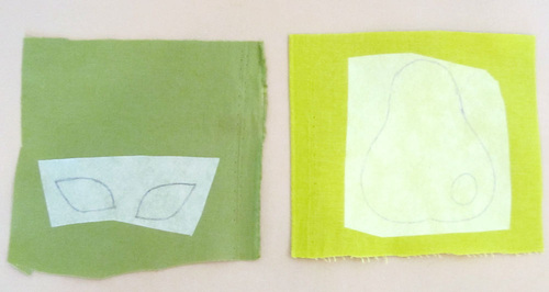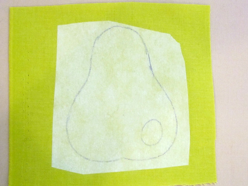 - Trace the pear and/or apple appliqué designs on the paper side of the fusible web.