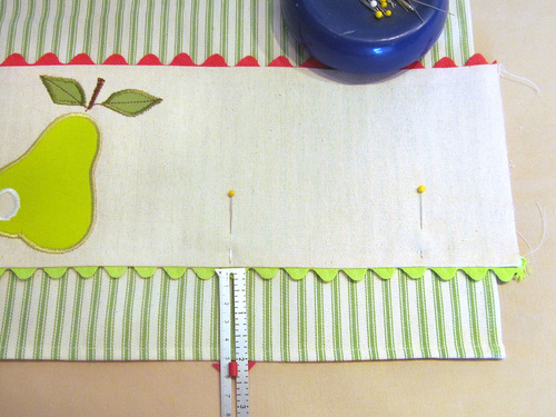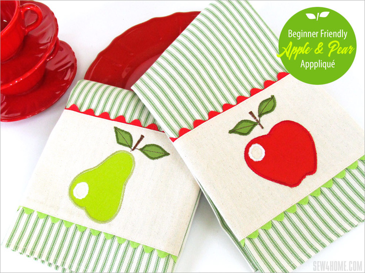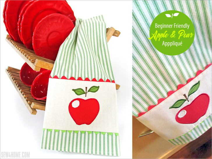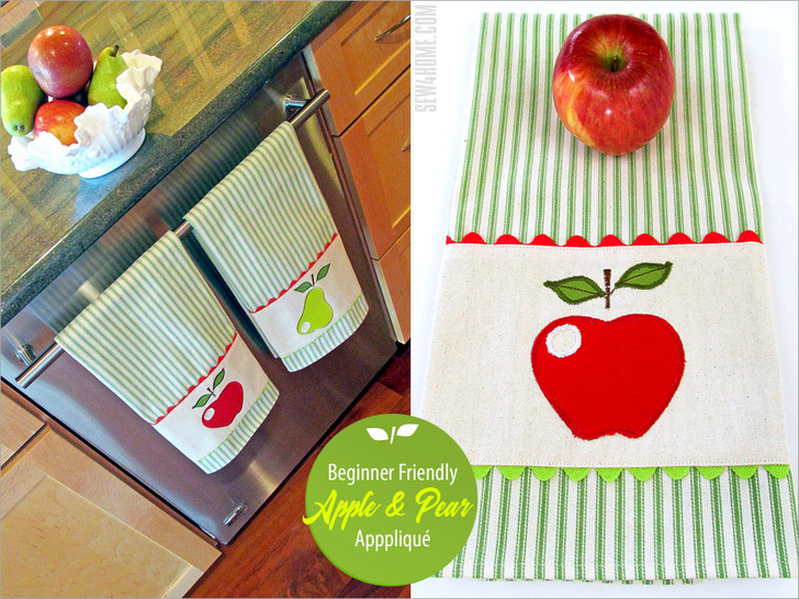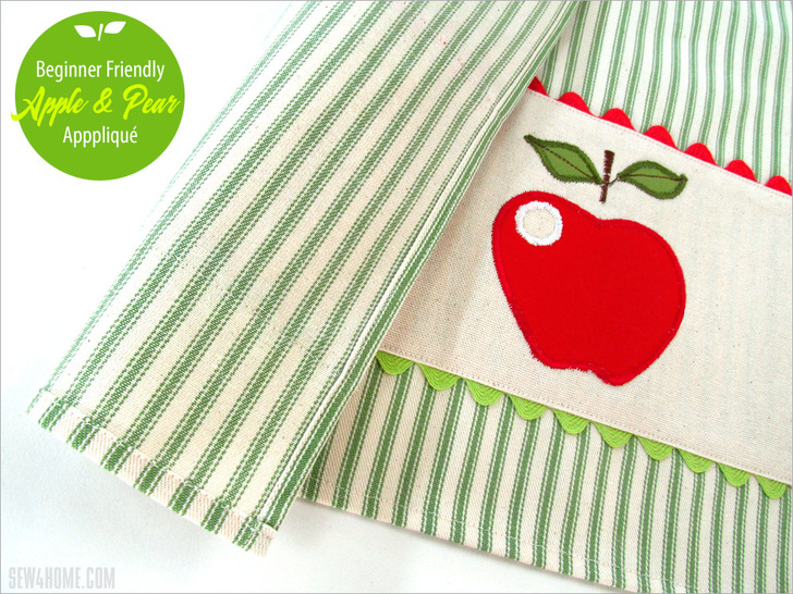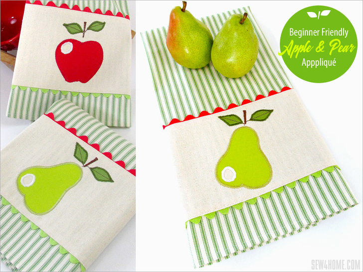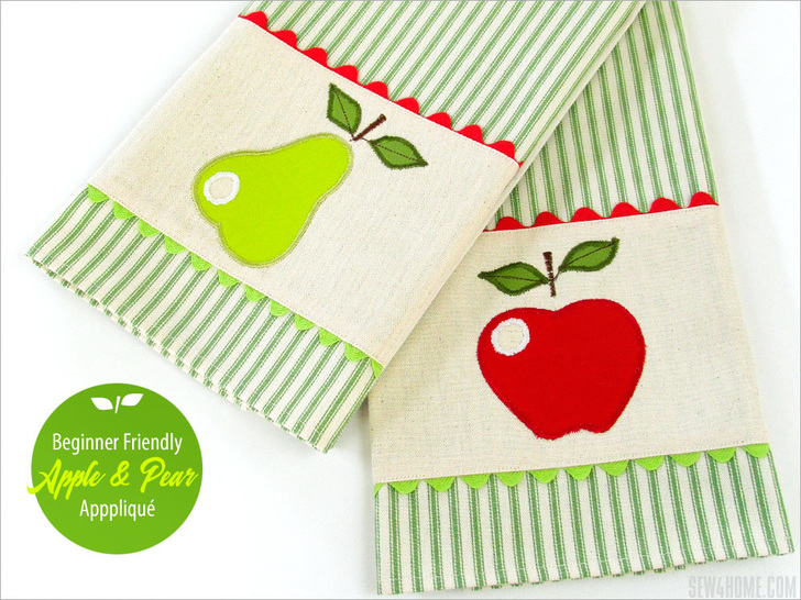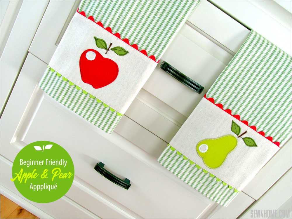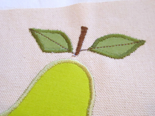 NOTE: Our instructions show construction of the Pear towel; the steps would be exactly the same for the apple towel with just the change in the appliqué colors.