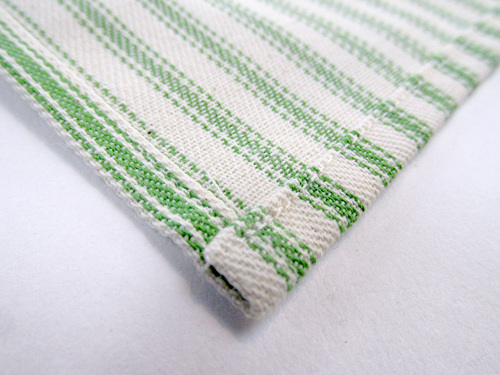 - 1 yard of 44″+ wide cotton ticking for the towel base; we originally used 100% cotton striped ticking in Kiwi Green