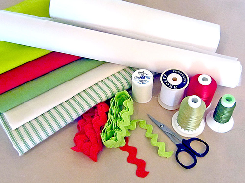 - 1¼ yards EACH of TWO coordinating colors of medium rick rack; we originally used red and light green