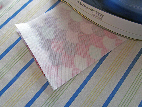 - Following manufacturer’s instructions, fuse the interfacing to the wrong side of the fabric.