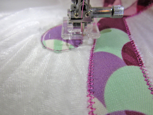 - Satin Stitch foot or Appliqué foot; optional, but it is very helpful to have a transparent foot with a guide for the appliqué stitching