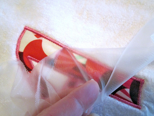 Since these towels are more fun, they are also more likely to be used (we all know the good towels hold the same status as the good dishes and the good scissors). Because of this, we recommend pre-washing the towels as well as the appliqué fabric. Press the appliqué fabric after laundering so it is nice and flat. If you adhere the recommended fusible interfacing (see below) following manufacturer’s instructions, the interfaced fabric should launder fine once the project is complete. In fact, the interfacing should help keep the fabric from wrinkling against the towel.