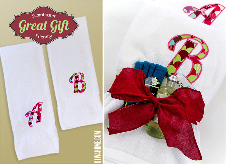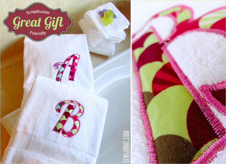 Monogrammed towels are one of life’s little luxuries, but for a bit more playful option, try appliqué. The letter(s) can be larger than a traditional monogram and the colors and patterns brighter. It’s a great use for some of those pretty scraps hiding in your stash.