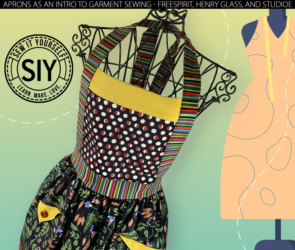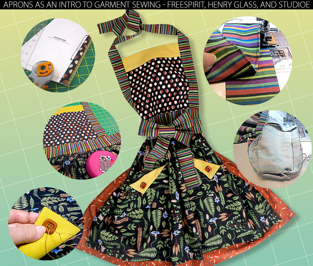 When you’re new to sewing, garments can seem like a big hill to climb. That’s why we like to suggest taking your first step with an apron project. It allows you to learn and practice some traditional garment sewing techniques while working in a mostly flat format. And, you’ll end up with a colorful apron to wear yourself or give as a gift.