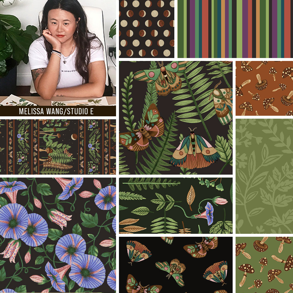 Melissa’s parents discovered her passion for design when she was just four years old! Decades later, her enthusiasm remains unabated. She is especially drawn to flora and fauna in their most natural forms, a theme evident within all the fabrics of Dark Forest. There’s a bit of whimsy in the mix too with playful tossed mushrooms and a multi-colored stripe. When browsing and shopping, you’ll want to look for her gorgeous 24” panel print, which blends the botanical style images of the ferns and leaves we chose for our apron’s overskirt with the graphic moons featured on the bib – as well as incorporating a sprinkling of gorgeous fluttering moths. We also added a coordinating blender from the Peppered Cottons collection by Pepper Cory also for Studio E. It’s featured as the accent band along the top of the bib as well as the pocket linings that fold forward adding a secondary accent against the skirt.