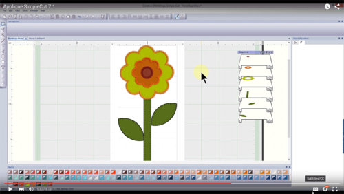 Then you’d use the software that comes with the Edge (called SimpleCut 7.1) to create the cutting pattern and the embroidery stitch pattern for your design. The Artistic Edge cuts out all the pieces of your daisy for you. And your embroidery machine stitches them all perfectly in place.