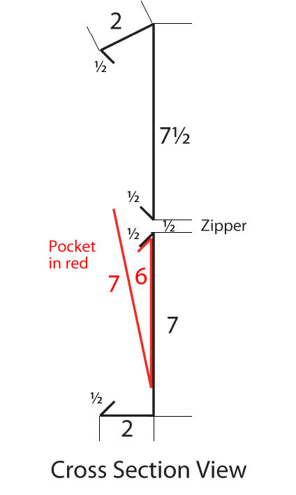 - The illustration below, which is a cross section, will also help you see how everything folds together. This is a classic pocket construction technique.
