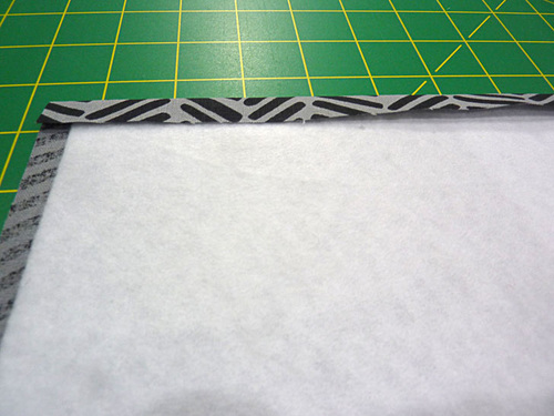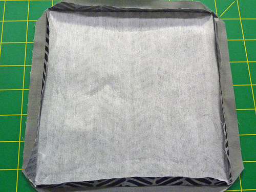 - Center the interfacing on the wrong side of the exterior lining pocket panel. Following manufacturer’s instructions, fuse in place.