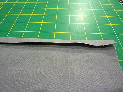 - On both the front and back exterior panels, un-pin and then unfold the top hems so the crease lines are still visible, but so you can stitch all the way from top to bottom of the panels.