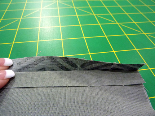 - Find the top exterior section. Fold back the bottom raw edge ½” and press well.