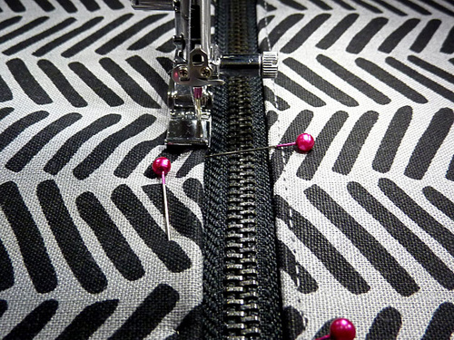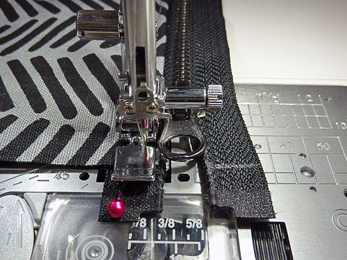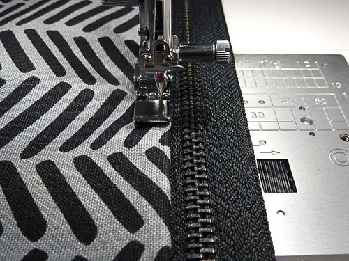 - Because you are working farther away from the zipper teeth, if your Zipper foot is nice and narrow as our Janome foot is, you are unlikely to need to open and close the zipper to stitch across.
