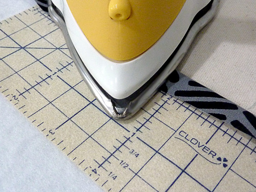 - On the exterior bottom section, fold back the upper raw edge ½” and press well.