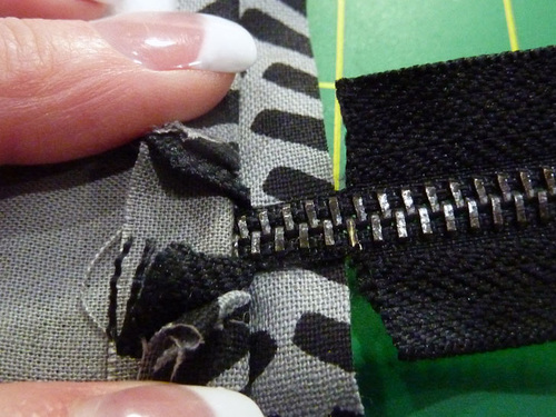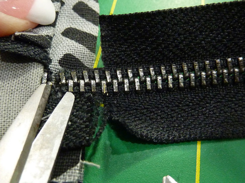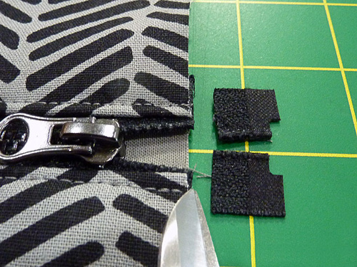 - Trim away the excess zipper tape at the zipper pull end.