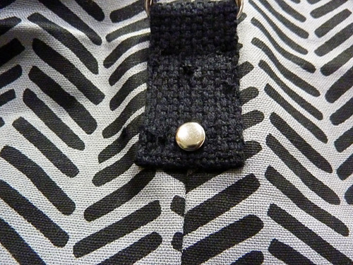 - As above for the right side tab, secure this tab in place with an open Box stitch.