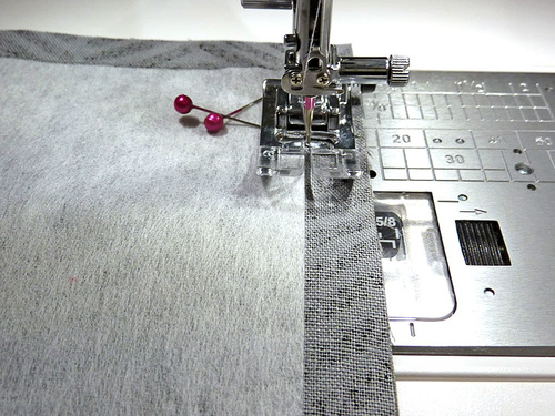 - Using a ½” seam allowance, stitch across the bottom. You are stitching along but not directly on the fusible fleece.