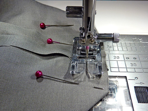- Pin together along each side. The top and bottom remain open.