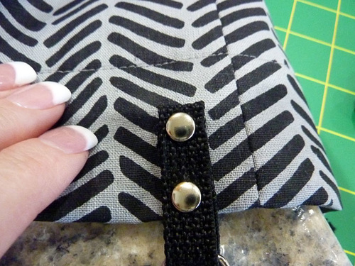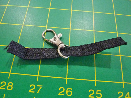 - Zig zag across the folded back end of the webbing to secure the swivel hook in place. We went back and forth three times with our zig zag seam.