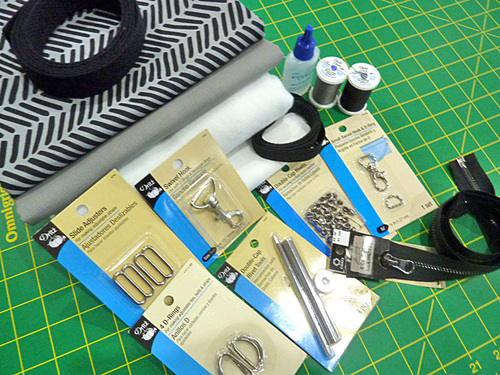 - 2 yards 1” wide webbing/belting for the adjustable strap; we used 1″ poly webbing for the strap