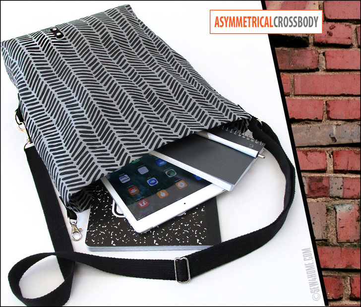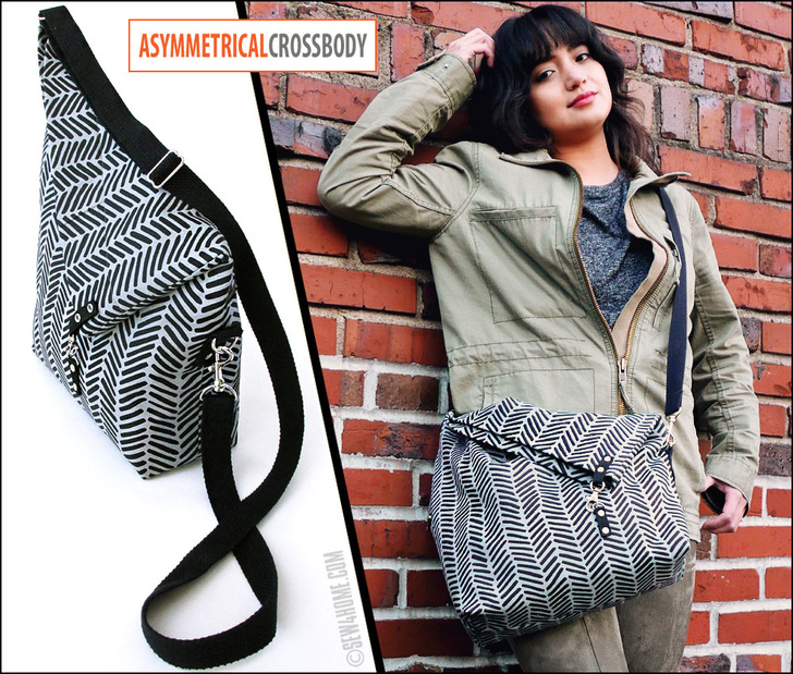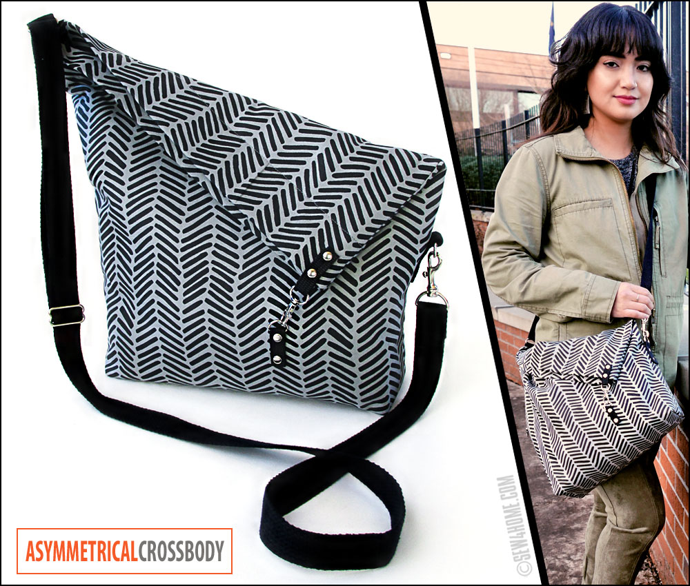 Asymmetrical means having two sides or halves that are not the same. I like to think that – really – most of the world is asymmetrical. Even Mother Nature knows matchy-matchy and even-steven can be too boring. Throwing in an interesting angle or a unique texture can take your project to the next level. The design of this bag started with an idea for the cool asymmetrical fold-over closure. From there, we worked with the wide selection of hardware to pull it altogether, adding swivel hooks and D-rings along with a fully adjustable shoulder strap. You’ll also love the clever full-width zippered pocket across the back of the bag.