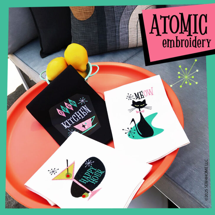 This custom machine embroidery design set is so radically retro, it has received the official Jetsons Seal of Approval! Even if you’re not from Orbit City, we think you’ll love our nostalgic Atomic Embroidery.