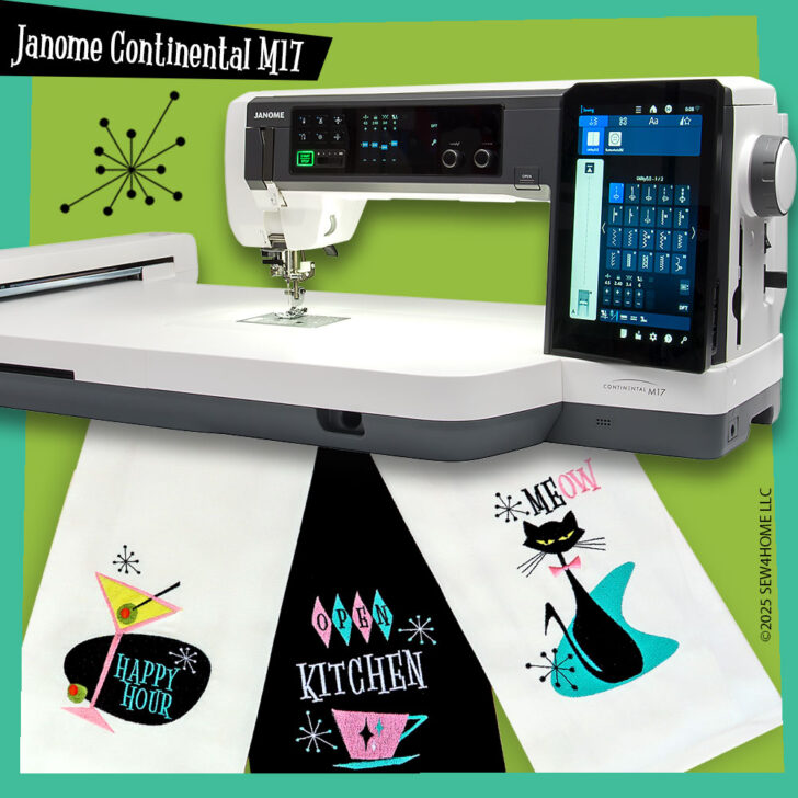 We realize not everyone has access to an embroidery machine, but we hope this set of striking designs will inspire you to find out more about how interesting and affordable it can be to add machine embroidery to your sewing space. We recommend taking a look at the full selection of Janome machines at your local Janome America dealer, from the top-of-the-line, sewing + embroidery Continental M17 to our studio favorites: the Skyline S9 and the brand new and very affordable Memory Craft 1000, to the embroidery-only Memory Craft 550E,Visit the Janome America site for all the details.