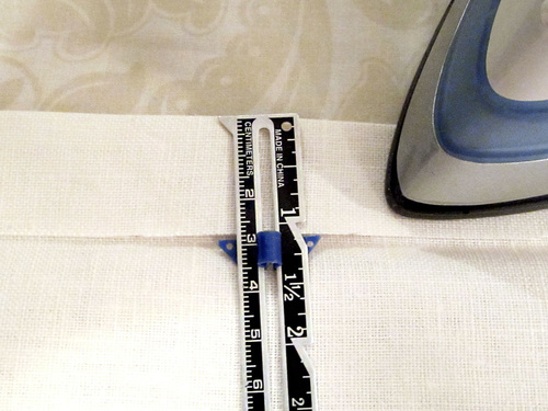 - To do this, fold back the raw edge 1⅛” on each side and press well.