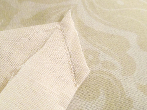 There are two classic hemming techniques shown below. The napkins feature a narrow ¼” double-fold hem with clean corners, which is an easy folding technique that creates a tidy, unobtrusive hem all around.