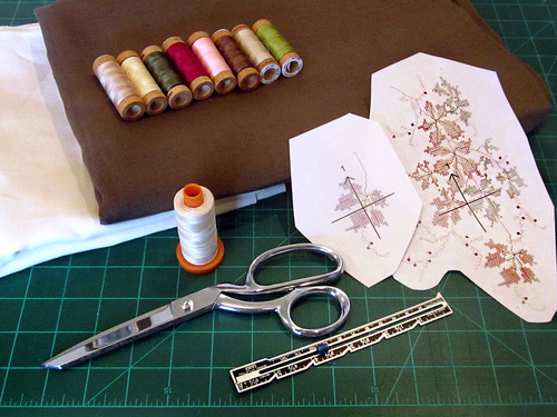 - Download the Main Autumn Leaves Garland Design and the Autumn Leaves Detail Design in the appropriate format for your machine. Save the design to a memory stick. You should also print the PDF files with the design cross hairs for placement.