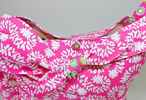 ONE long strap, using the pattern - From the fabric for the inside facings (Pink Bloomies in our sample), cut: