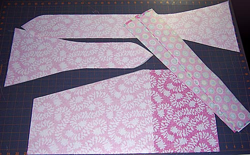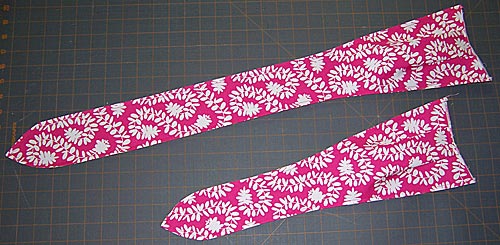 - Match each outside strap to its coordinating inside strap (Vines to Bloomies in our sample), right sides together. Align the pleat marks and all raw edges. Pin in place.