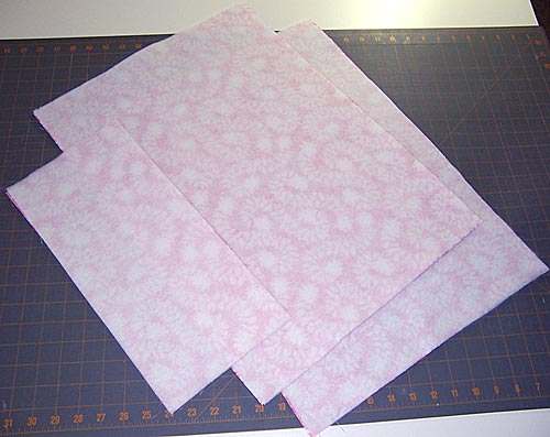 - Following manufacturer’s instructions, fuse the fleece to one of the outside bottom panels and the two outside 15″ x 21″ side panels.