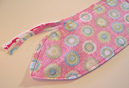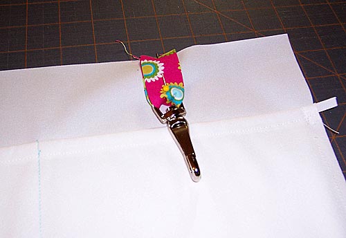 - Turn right side out. Press, centering the seam on one side. This is the loop for the swivel hook. Insert the loop through the swivel hook and match the raw ends.