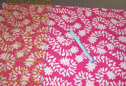 - With your fabric pen or pencil (make sure it’s one that washes away or fades with exposure to the air because you are marking on the front of the project), extend the marked vertical stitch-line past the top of the pocket slant all the way up to the upper edge of the panel.