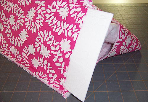 - Trim corners, and insert the piece of Timtex into the bottom panel pocket.
